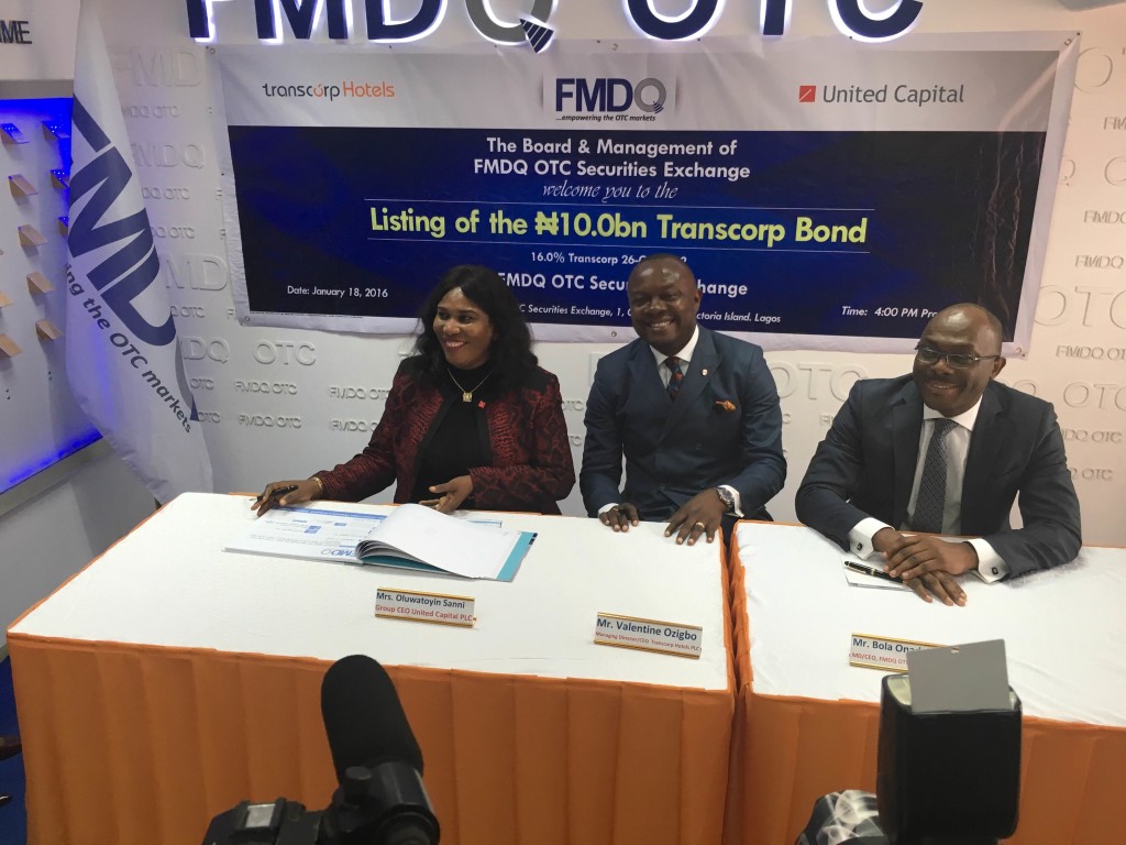 United Capital Plc Client Transcorp Hotels Plc Lists N10 Billion Series 1, 7 Years, 16% Coupon Bond at the Nigerian Stock Exchange and FMDQ OTC