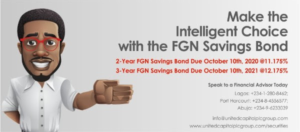 FGN Savings Bond is highly recommended for students and for those who cannot take risk. Interest is guaranteed as well as the capital invested.  The FGN Savings Bond October auction is valid till Friday, October 5, 2018. To participate, send an email to unitedcapitalsecurities@unitedcapilaplcgroup.com or visit investnow.ng to open a brokerage account.